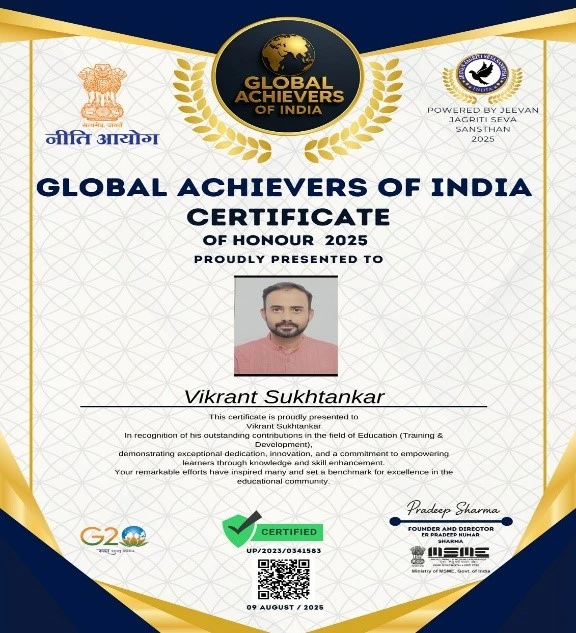 This honour celebrates professionals who inspire change, drive innovation, and contribute meaningfully to the growth of society and the nation. The certification recognizes dedication, commitment, and consistent efforts toward excellence, particularly in areas such as education, training, leadership development, and professional empowerment.